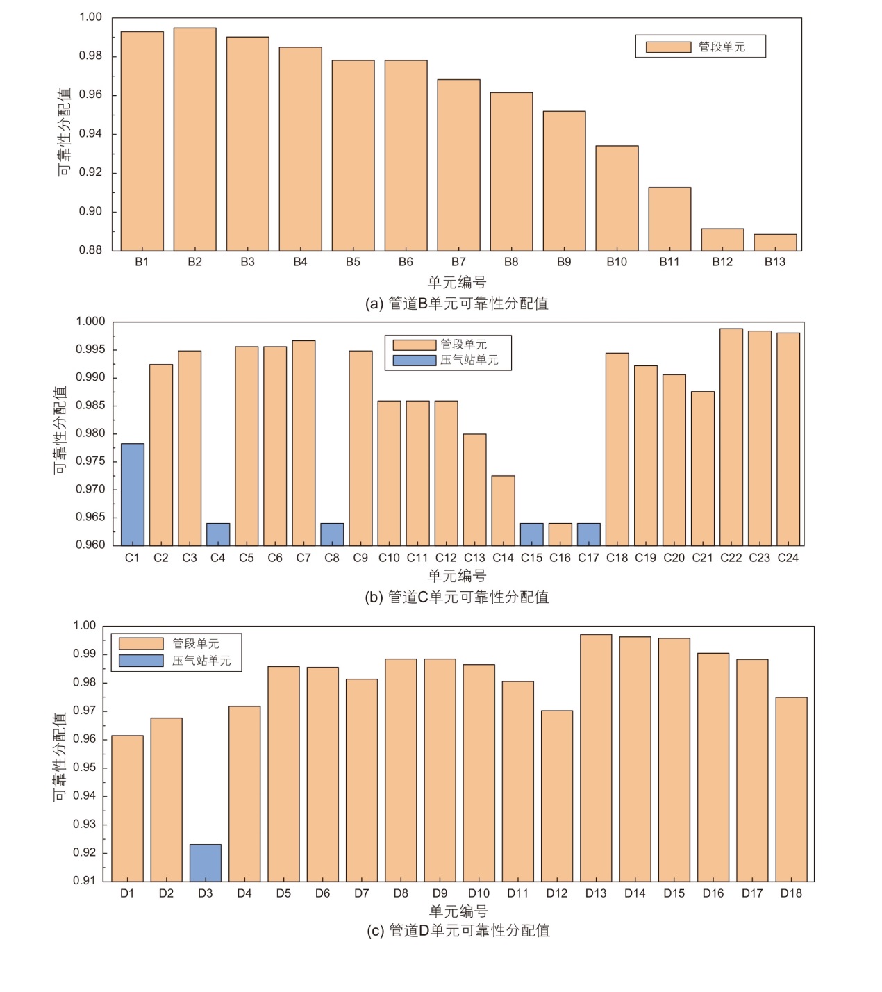 随着天然气需求的不断增长,天然气管网系统的稳定运行和安全性越来越受到重视。可靠性管理作为完整性管理的进一步深化,对系统局部及整体的功能状态有着更全面的评价管理体系,能够促进大型天然气管网系统的安全平稳运行。可靠性分配是可靠性管理中不可或缺的一环,通过将系统可靠性指标合理地分配至各单元,明确各单元可靠性要求,能够为管网系统的运行管理和维修维护提供可靠性保障和指导。对于拓扑结构复杂的管网系统目前还没有有效的可靠性分配方法。本文根据管网系统结构与工艺特点,改进层次分析法,建立复杂结构天然气管网系统递阶式可靠性分配方法。根据“管网—管道—单元”功能层级建立天然气管网系统递阶层次模型;加入保供重要度和后果严重度补充供气可靠性影响因素,通过对系统供气可靠性影响因素进行量化评估,将系统可靠性分配指标逐级分配至各单元,确定复杂结构天然气管网系统可靠性分配方案。最后将本文提出的方法应用于某实际天然气管网系统,结果表明压气站单元的可靠性分配值低于相邻管段单元,管段单元可靠性分配值的大小与距离需求点的位置有关。管道A具有最高的可靠性要求,单元可靠性分配值较为均衡,关键供气影响单元数量较少;管道B整体可靠性要求最低;管道C和管道D相近,单元可靠性分配值差异大,关键供气影响单元数量多。本研究建立的递阶式可靠性分配方法适用于复杂结构天然气管网系统,完善了管网系统可靠性理论体系,为增强管网系统可靠性提供了科学依据。